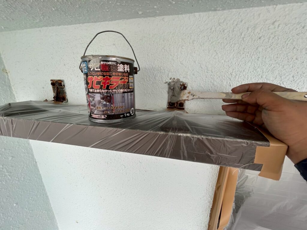 雨戸の戸袋にはかなりのサビがありましたが、サビ止め+サビキラーでしっかり対策。サビを放置すると金属が徐々に腐食し、強度が低下して破損や倒壊の原因になる可能性があります。特に雨戸や手すりなどでは、思わぬ事故やけがにつながる恐れもあり、早めの対処が重要です。